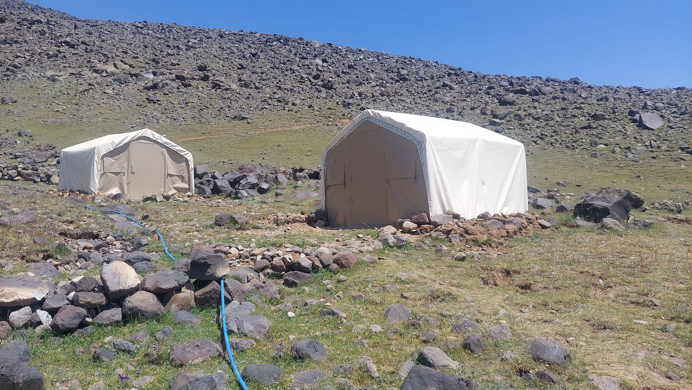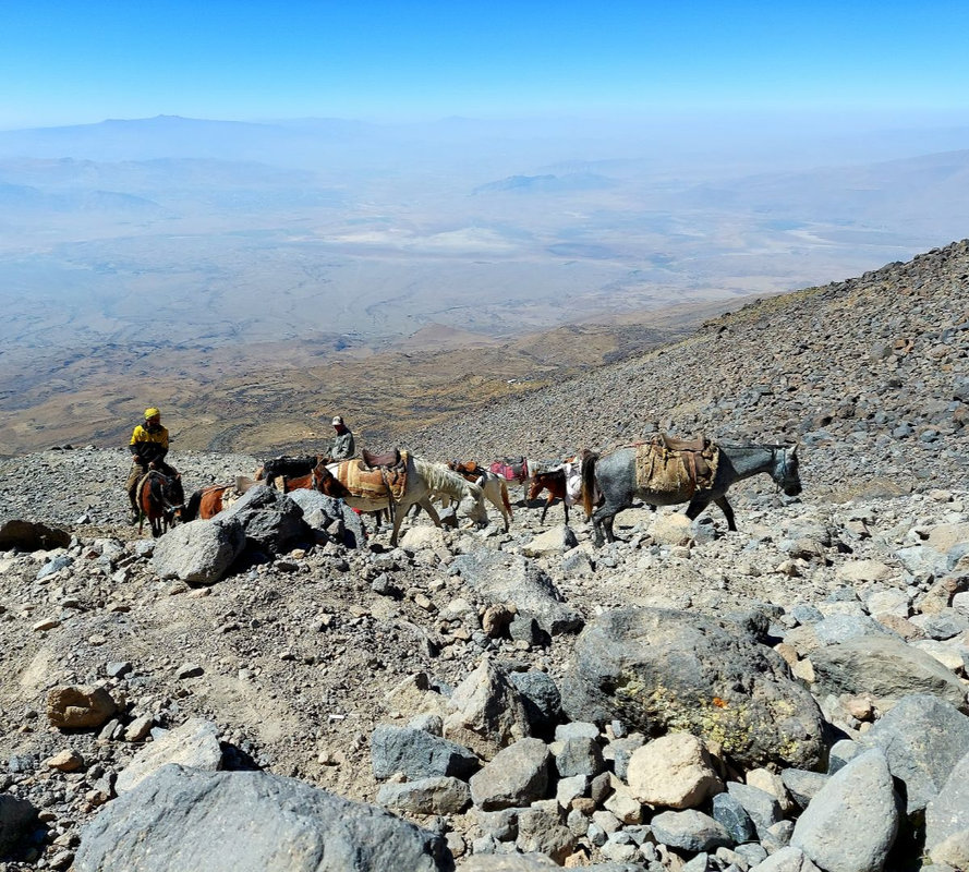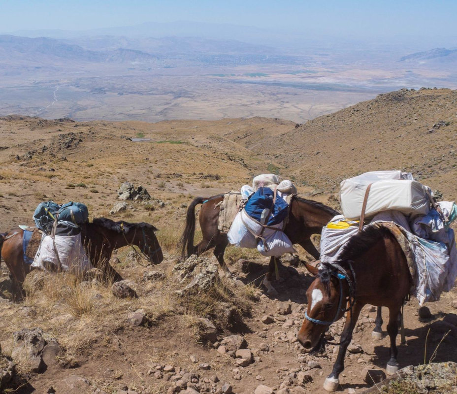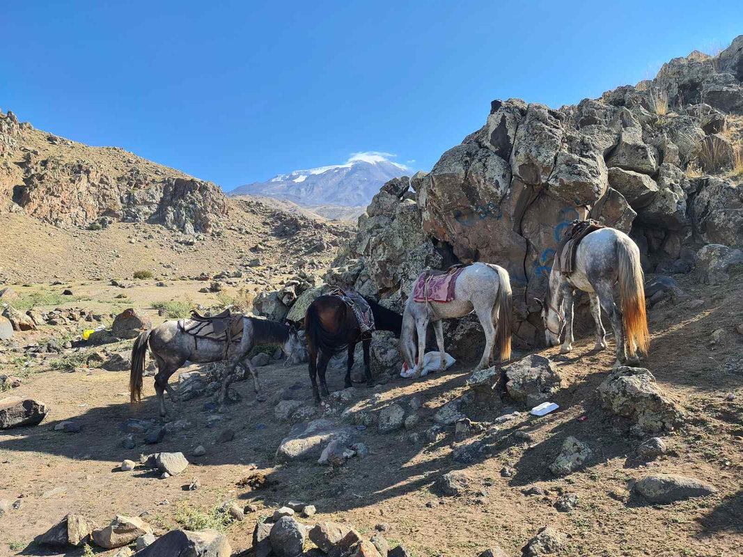 Po śniadaniu wyruszamy w kierunku Araratu, aby rozpocząć trekking do pierwszego obozu na wysokości 3 300 m. Klimat tutaj jest pustynny, a teren ukształtowany przez aktywność wulkaniczną. Wśród wysuszonej słońcem roślinności wypasają się owce pilnowane przez karabasze – anatolijskie psy pasterskie. Między nimi latają kolorowe dudki i sprytne kruki. Po raz pierwszy zobaczymy kurdyjskie chałupy, gdzie ludzie wiodą tradycyjne życie. Po dojechaniu do punktu zbiórki (2500m) bierzemy małe plecaki z niezbędnymi rzeczami – konie będą transportować ciężki bagaż. W drodze do obozu zobaczymy całą trasę, którą będziemy pokonywać przez kolejne dni, aż po szczyt pokryty czapą lodowcową. Trekking zajmie około 3-4 godzin. Po przybyciu do obozu czas na relaks, śpiewy i tańce przy kurdyjskiej muzyce oraz malowniczy zachód słońca.