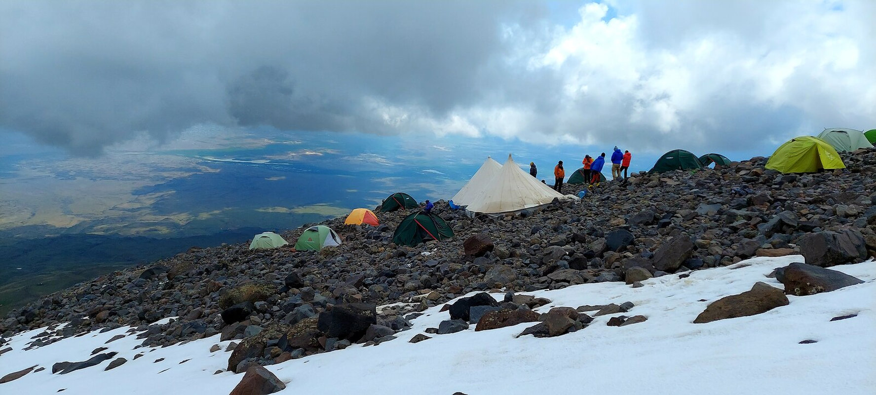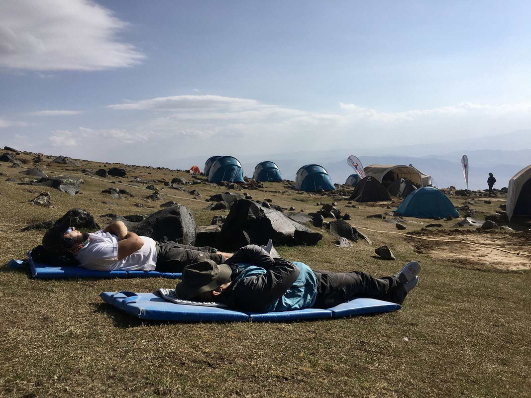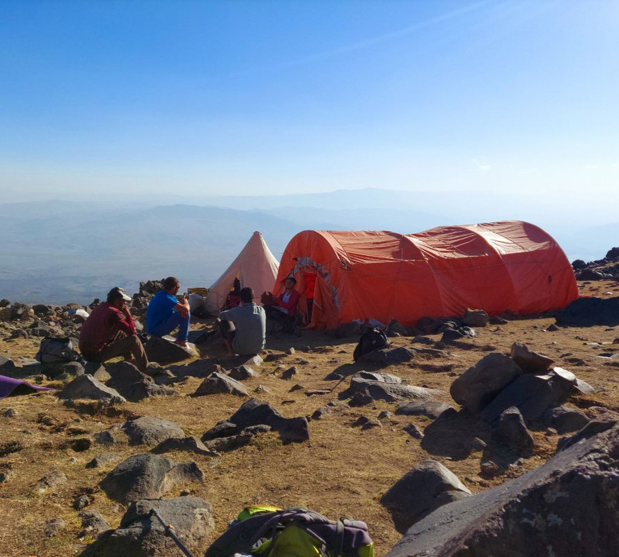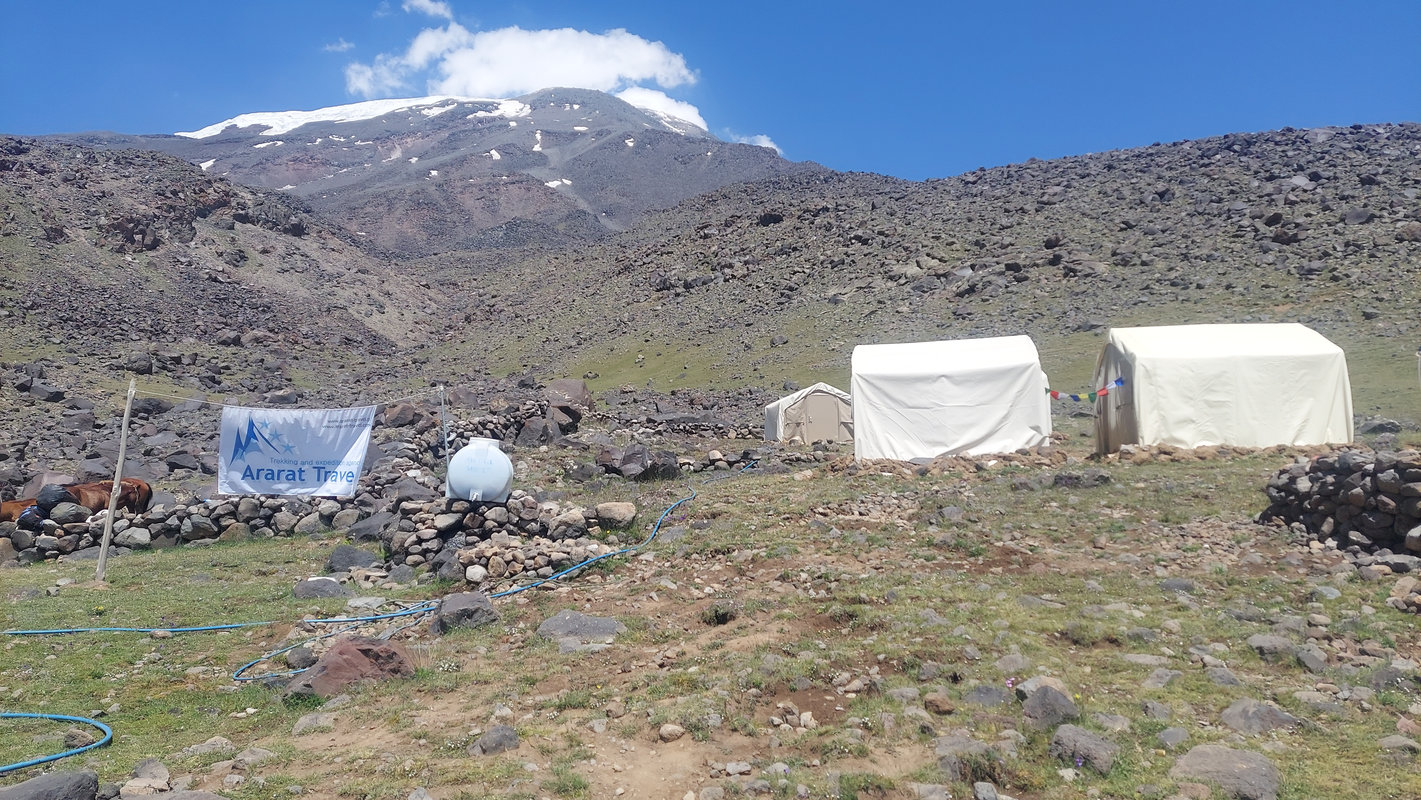 Dzień aklimatyzacyjny z trekkingiem do drugiego obozu na wysokości 4 200 m, który jest oddalony od pozostałych, co zapewnia prywatność, ciszę i czystość. Teren stopniowo staje się bardziej surowy. Będziemy mijać wodospad zasilany wodą z topniejącego lodowca oraz często pojawiające się orły – symbol Araratu. Im wyżej, tym piękniejsze widoki – bezkresy, przy których odpoczywa serce i głowa. Trekking w obie strony zajmie około 4-5 godzin z przerwami na podziwianie widoków i aklimatyzację. Po zejściu powrót do obozu pierwszego na nocleg.