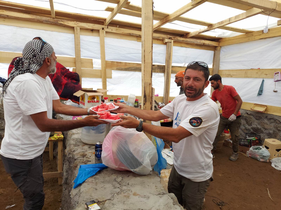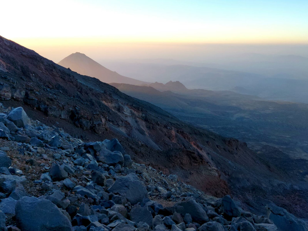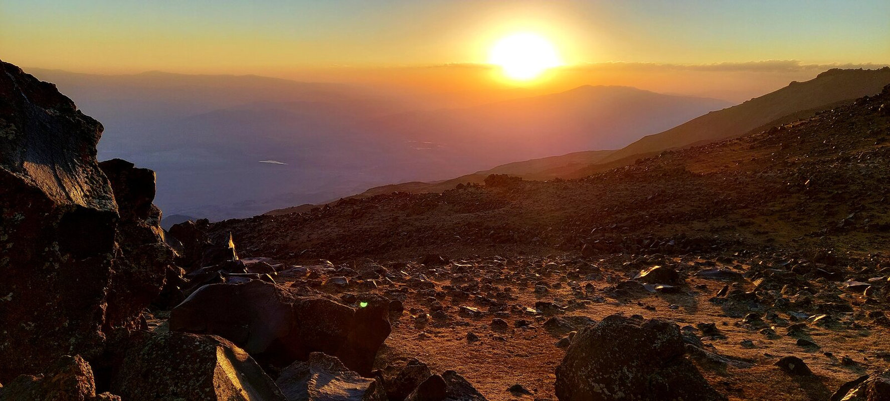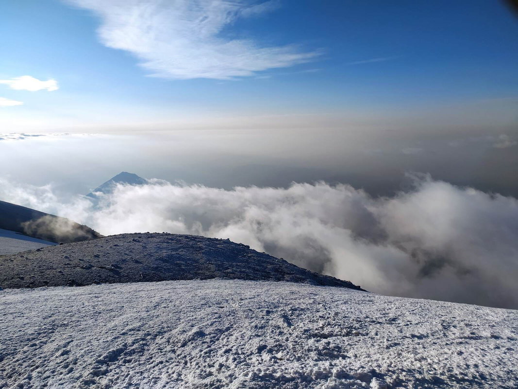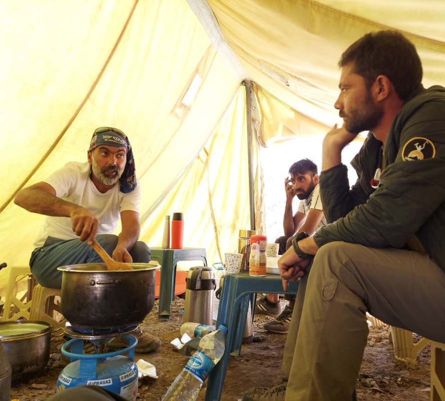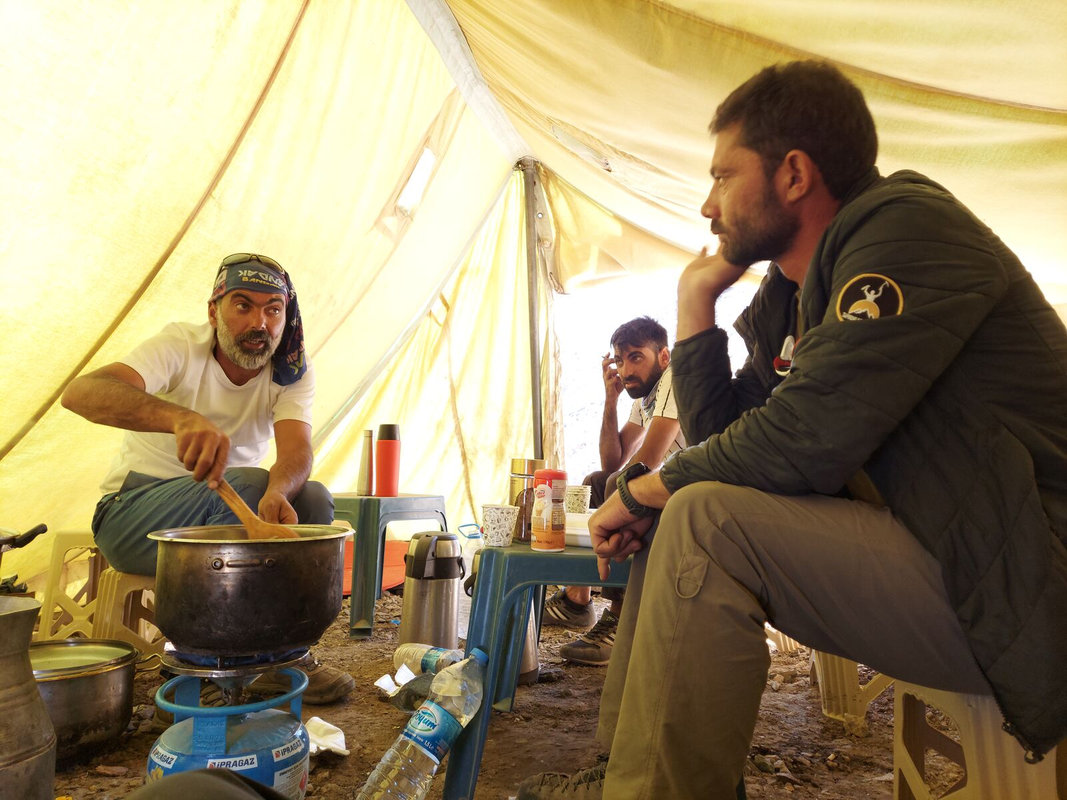 Dzień szczytowy! Wyruszamy po śniadaniu, uzupełniając zapasy wody i herbaty. Droga na szczyt zajmuje do 5 godzin i jest najtrudniejszym odcinkiem wyprawy. Od początku ścieżka jest wymagająca i dosyć stroma – mamy do pokonania około 500 m trudnego terenu, później robi się lżej. Wschód słońca przynosi bajeczne widoki: Mały Ararat i niesamowity cień Wielkiego Araratu. Sam szczyt pojawia się od wysokości około 4 700 m, co daje dodatkową motywację. Na Araracie jest lodowiec utrzymujący się cały rok – tutaj zakładamy raki. Z tego miejsca tylko 30-40 minut do szczytu, z którego rozpościerają się widoki na Iran, Armenię, Aragats oraz Tendurek – drugą świętą górę Kurdów. Po zdobyciu szczytu schodzimy z powrotem do obozu drugiego na odpoczynek i posiłek, a następnie kontynuujemy zejście do obozu pierwszego. Tam pierwsze świętowanie sukcesu!