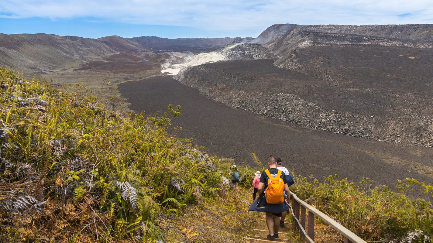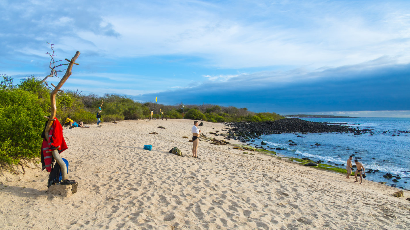Zaczynamy od plaży Playa Brava, następnie jedziemy na plażę Playa Mansa i słynną Tortuga Bay. Półtoragodzinny spacer przez kaktusowy las prowadzi do jednej z najpiękniejszych plaż archipelagu, gdzie możemy spotkać iguany morskie wygrzewające się na skałach i małe rekiny pływające w płytkiej wodzie. Czas na kąpiel i plażowanie. Po południu odwiedzamy Las Grietas - spektakularne szczeliny w lawie, wypełnione krystalicznie czystą wodą (mieszanką słonej i słodkiej). To naturalne SPA wulkanicznego pochodzenia, idealne na ochłodę. Wieczorem spacer po Puerto Ayora i kolacja z widokiem na zatokę.