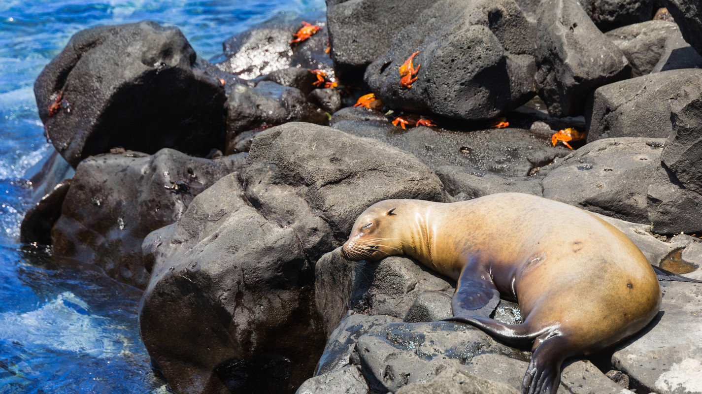 Wypływamy na wyspę Pinzón, gdzie będziemy świadkami pokazowego łowienia ryb (i być może sami złapiemy coś na lunch). Pierwszy snorkeling wśród żółwi morskich, rekinów białopłetwych i stad kolorowych ryb tęczowych. Drugi postój to wyspa La Fe, gdzie obserwujemy głuptaki niebieskonogie - ptaki o tak niesamowicie niebieskich łapach, że wygląda jak z bajki. Kolejny snorkelingu przy rafie koralowej. Obiad serwowany jest na pokładzie. Słońce, woda, dzikie życie - dzisiaj jesteśmy częścią tego ekosystemu.