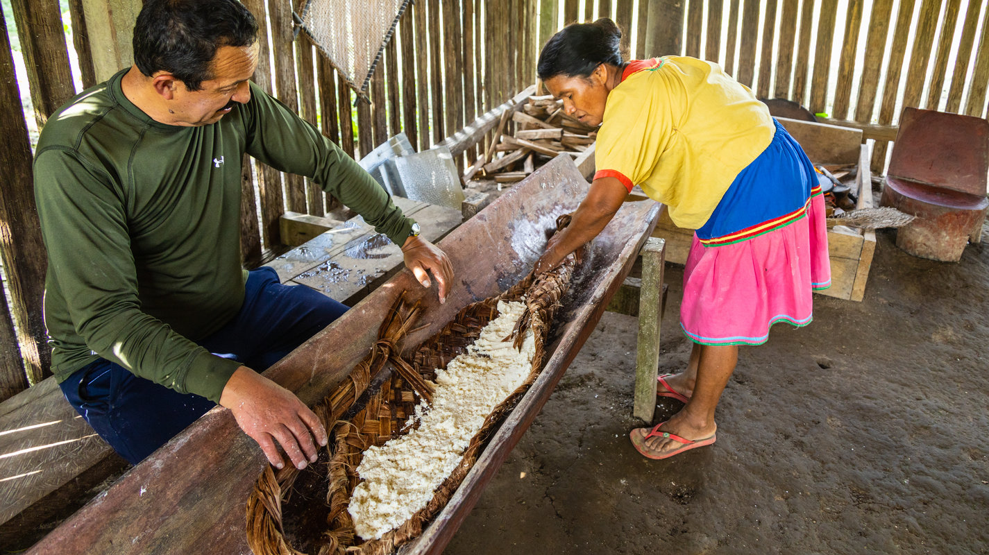 Po śniadaniu płyniemy canoas do pobliskiej wioski, gdzie żyje lokalna społeczność Siona. Mieszkańcy pokażą nam, jak wygląda ich codzienne życie w harmonii z dżunglą. Degustacja lokalnych owoców (niektóre znajdziesz tylko w Amazonii!) i tradycyjnych potraw, w tym kasaby - podstawy tutejszej diety. Lunch w wiosce przygotowany przez rodziny Siona. Po południu spotkanie z szamanem, który zagłebi nas w sekrety Ayahuaski - świętego napoju używanego w ceremoniach (bez degustacji). Dowiemy się, jak wygląda życie duchowe społeczności amazońskiej i jaką rolę odgrywa medycyna roślin. Ostatnią atrakcją dzisiejszego dnia będzie wizyta nad jeziorem o zachodzie słońca.